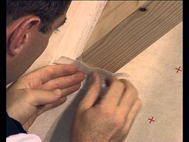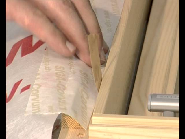 Bande symétriquement prépliée intérieure et à fort pouvoir adhésif pour raccorder la couches d’étanchéité à l’air au niveau des poutres et des fenêtres de toit.