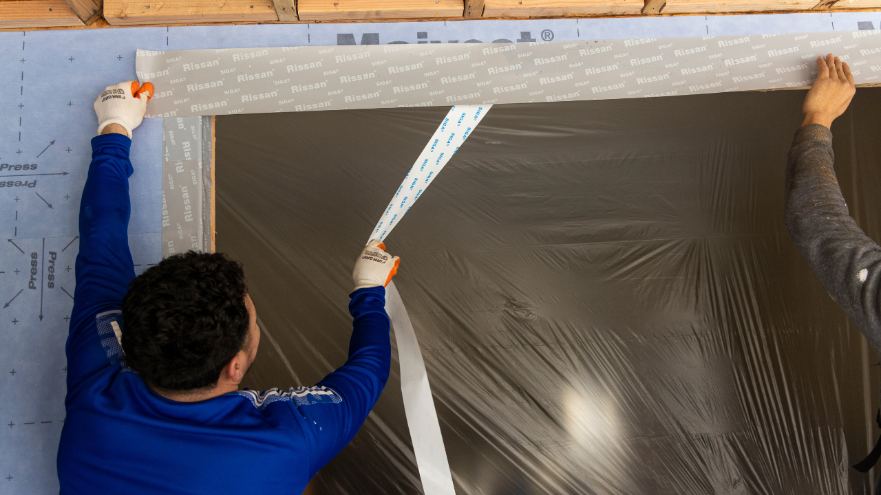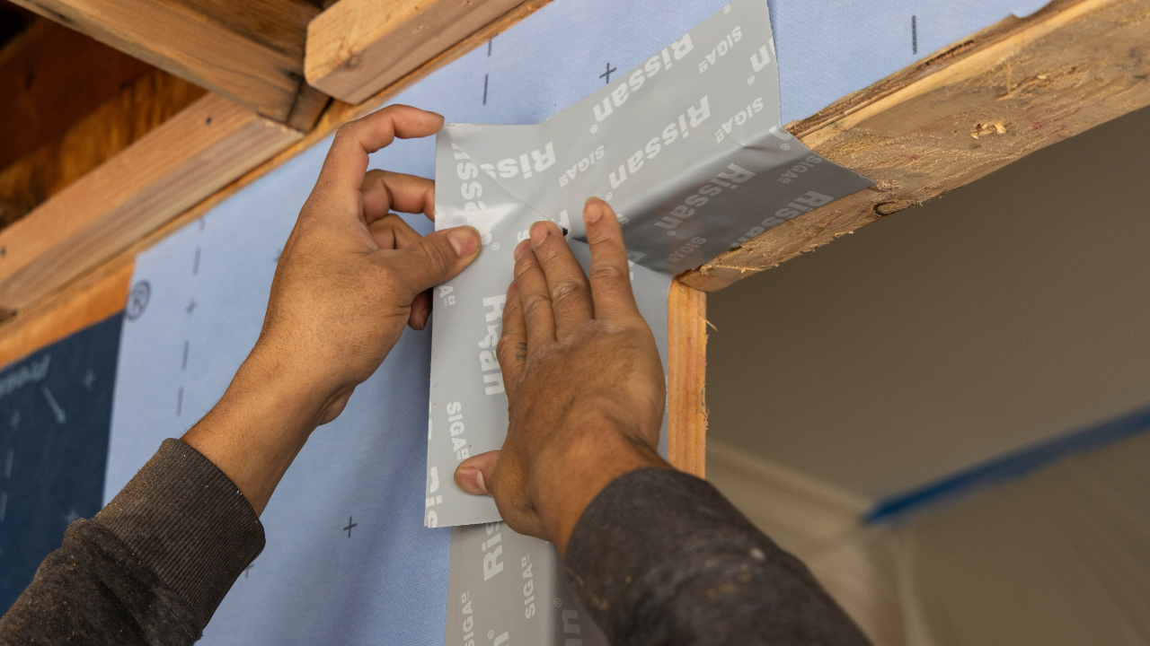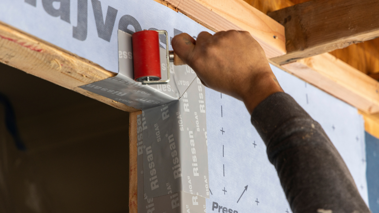 With the SIGA system, installers used pre-formed corners, tapes, and rollers to seal each opening.